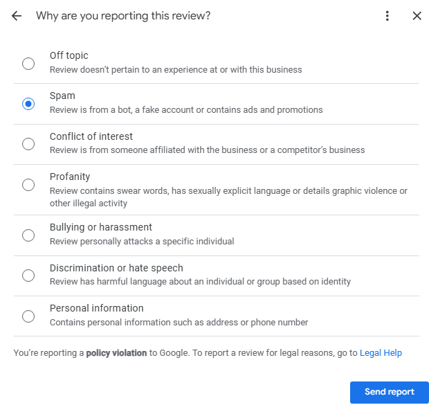 Not The Same assets55 Επιλέγοντας ως λόγο το “Spam – Review is from a bot, a fake account or contains ads and promotions”. Η επιλογή αυτή βασίστηκε σε αποδείξεις και τεκμηριωμένη ανάλυση, διασφαλίζοντας ότι κάθε ενέργεια ήταν απόλυτα σύμφωνη με τις πολιτικές της πλατφόρμας.