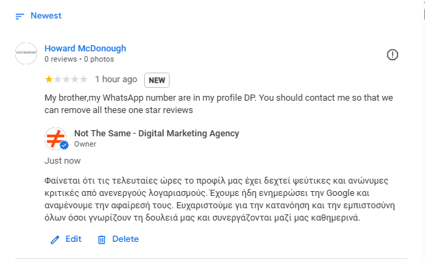Πρόσφατα, η Not The Same Marketing βρέθηκε αντιμέτωπη με μια οργανωμένη επίθεση από κακόβουλα spam reviews στο Google My Business. Η εμπειρία αυτή ανέδειξε τη σημασία της άμεσης, τεκμηριωμένης και διαφανούς αντίδρασης ακολουθώντας τα αντίστοιχα guidelines της Google.